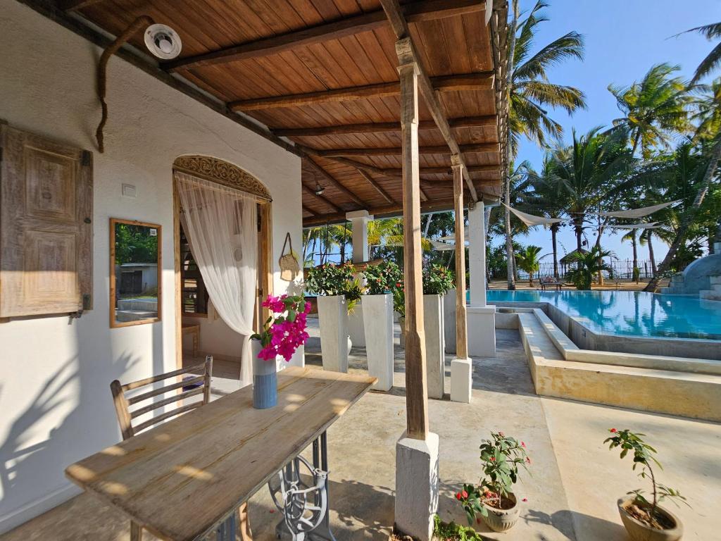 Die Deep Blue Villa hat einen schönen Garten, einen Pool und einen privaten Strandbereich. Die Zimmer sind einfach aber charmant ausgestattet mit eigenem Bad und Klimaanlage. Es gibt eine Gemeinschaftsküche, in dem man sich zwischen den Hauptmahlzeiten Snacks zubereiten kann.